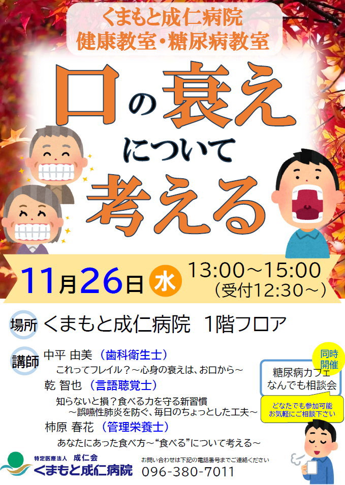 くまもと成仁病院で健康教室・糖尿病教室を開催します。