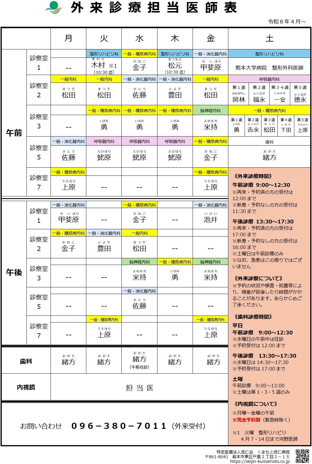 令和8年度の外来診療担当医師表をお知らせします。